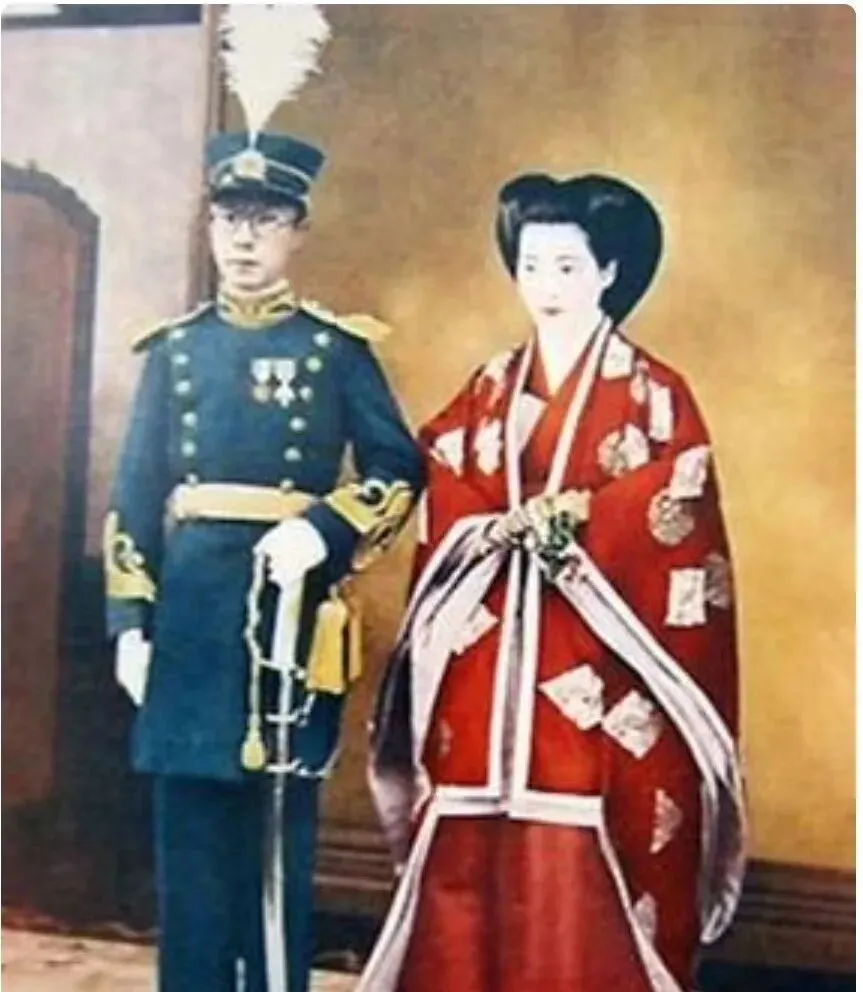 这套军礼服与红色和服摆在一处,是典礼场面的庄重范儿,胸前的绶带从肩头斜下来,剑柄冷冷地闪,和服的团纹一层压一层,袖口拖到脚背,站姿笔直得像尺子,照片里没笑,可越看越热闹,锣鼓点仿佛从画外滚了进来。