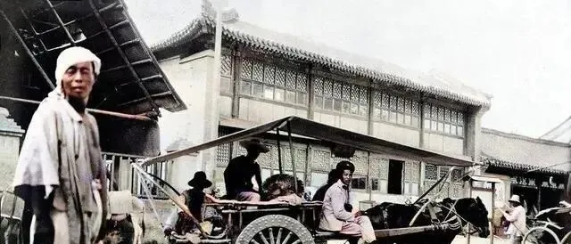 这个车叫半棚马车,棚子用芦席或薄木板搭的,前后留出透风口,夏天不闷,冬天挡点风,车辕长,铁箍套着木轮,咯吱咯吱地唱,车里坐着的多半是赶集的人家,背后靠着卷好的被褥和箩筐,妇人手里还攥着一小串铜板。