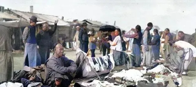 清末民初彩色老照片:城楼下四个官员;二手衣服摊;台湾省的钦差行台;北京永定门和正阳门。