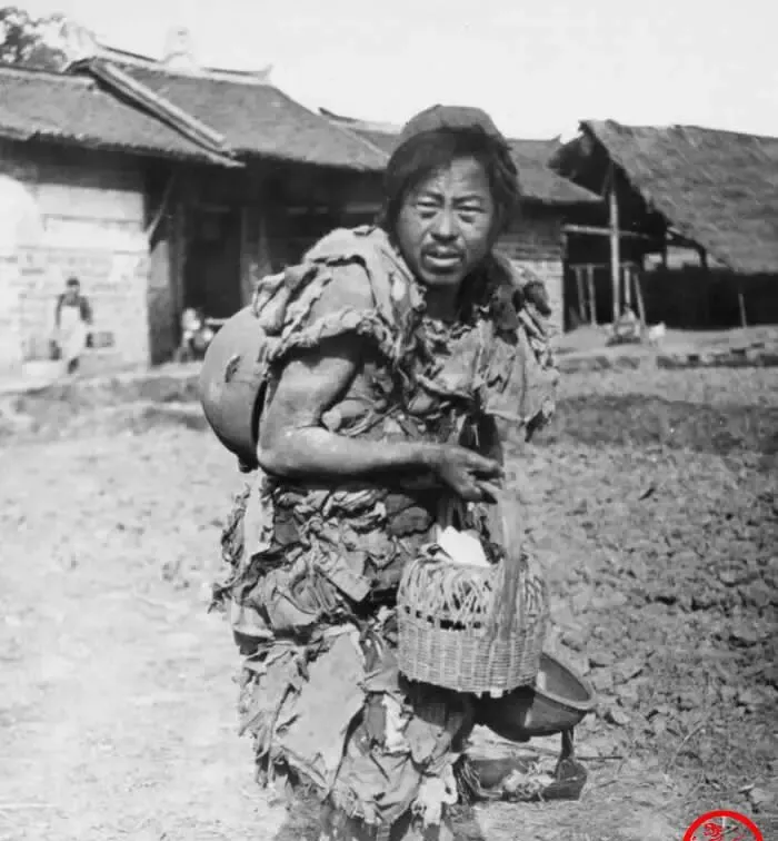 图中这位衣裳像树皮一样一层一层贴在身上的人,就是当年的叫花子,破布缠成袍子,肩上挂锅盆,手里拎着竹编小篮,里头塞着碗和干巴巴的馒头边角,走起路来叮当响,奶奶说她年轻时在集上见过类似的,讨来一碗稀饭能暖半天身子,现在我们嫌外卖凉一口不吃,那时候能吃上热汤就是天大的幸运。