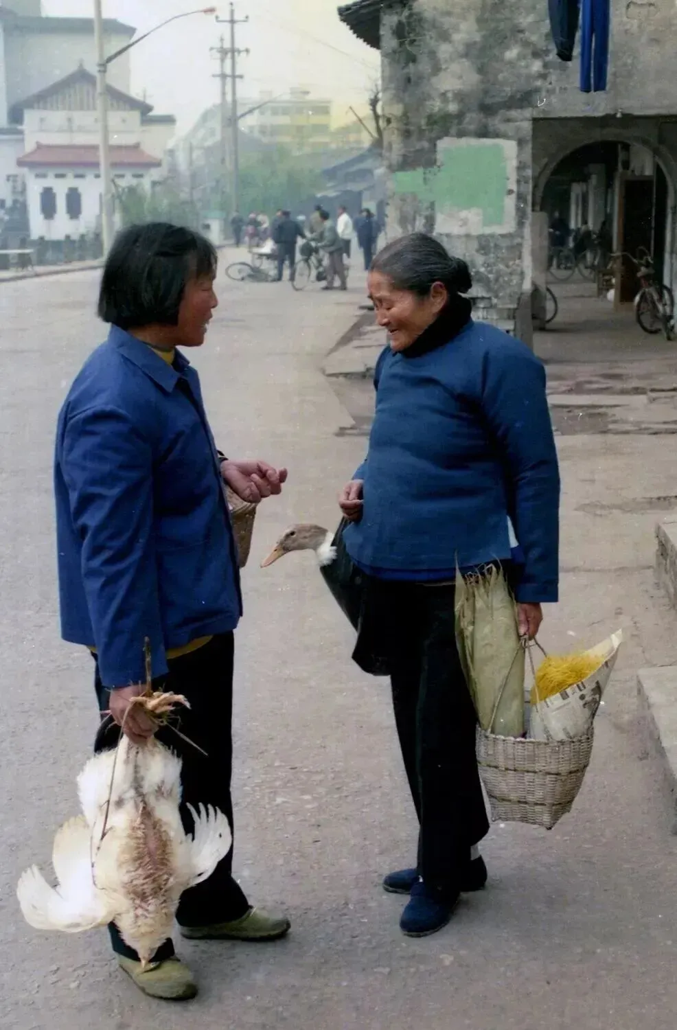塘栖东小河两位大娘备年货相遇,