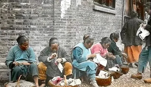 这个长条砖墙下坐着的一溜老嫗,就是靠针线讨生活的裁缝婆,她们篮子里装着线团、顶针、破补的袖口,手指干瘦却稳,针尖一挑一送,布面光得像抹了油,妈妈说上学那会儿裤膝一破,回家先别挨揍,把裤腿塞给门口的王婶,十个铜板就补得平平整整,现在快递一丢,新的就到了,旧布的温度也跟着没了。