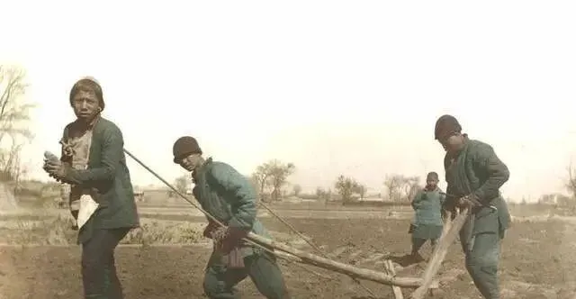 这几位裹着头巾的女壮工握着木犁,肩上是麻绳勒出来的陷儿,脚跟一下一下蹬,泥块被撬开翻过去,她们不爱说话,回家把手在盆里一洗,抹点桐油就又上了针线活,这种能耐,现在城里姑娘看得直佩服,健身房一套器械也练不出这股子劲。