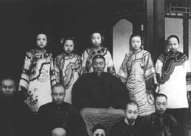一排女眷坐得端,服饰花团锦簇,后墙却露出剥落的灰,旧朝后尾巴那点落寞,就藏在这华服与破檐的对照里,镜头替我们把冷暖都摆明白了。