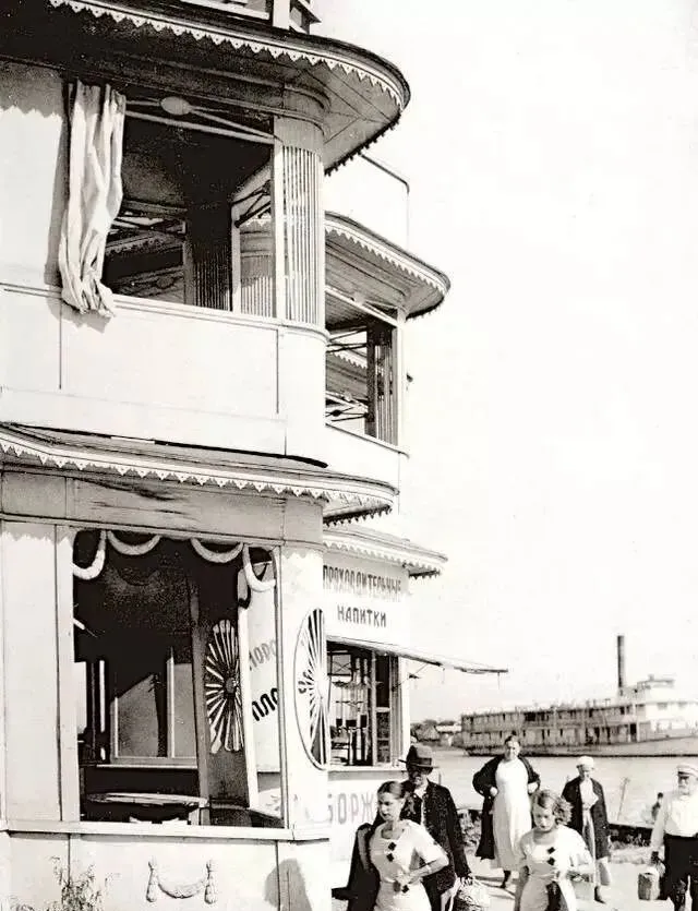 图中这座圆咕隆咚的小亭子叫清凉饮料铺,木檐下挂着帘幔,边沿还刻了花边,招牌上是外文字母,玻璃窗一推开就能递杯子,老板穿着白坎肩,吧台上摆着汽水瓶,气泡贴着玻璃往上窜,我小时候第一次见老照片时就问,咋没有冰柜呀,妈笑,说那会儿的冰都在江里。
