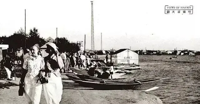 图里一溜木船靠在岸边,船头尖尖,桨叶放平,姑娘们穿着碎花旗袍,脚下布鞋干净,笑着绕过一滩水,岸上远远立着烟囱,冒着细白的气,夏天的哈尔滨不冷,风一吹有甜味,像雪糕化掉之前那口凉。