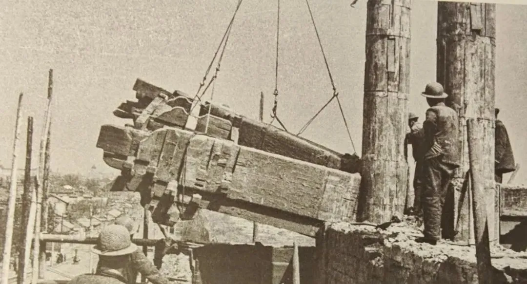 这一幕最热闹,街口车水马龙,电车刷地掠过,围观的人把巷口堵成一团,教堂的穹顶安静地看着,吊起的大构件从空中慢悠悠挪步,像古人抬轿子过街,谁都不敢出声大喊,怕惊着这块有几百年脾气的木头。