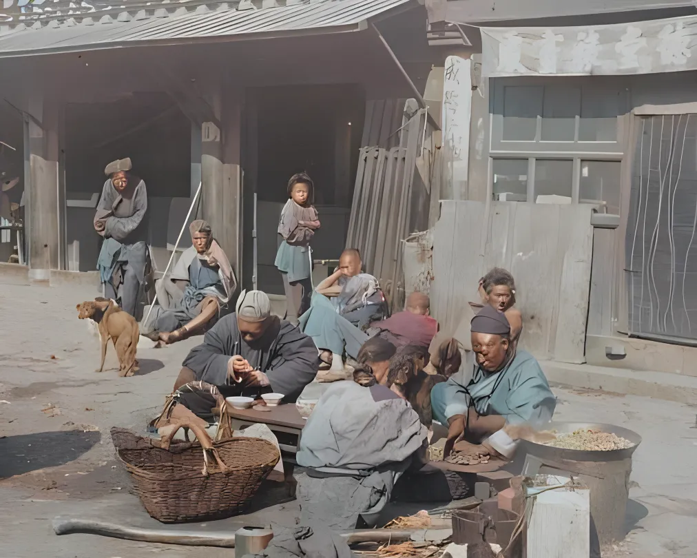 清末彩色老照片:八品县丞;烟台的小吃摊、菜市场;偷猫并残忍杀害的犯人。