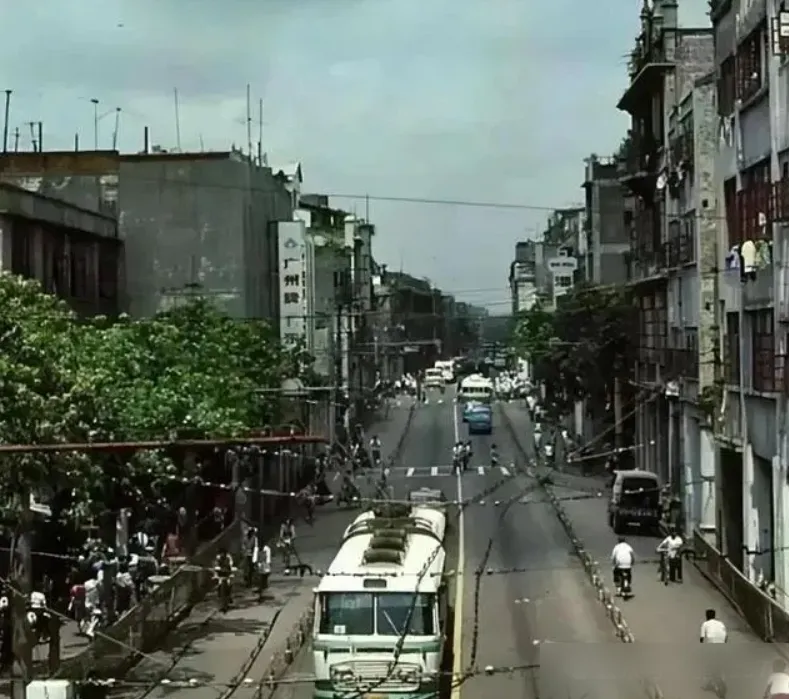 1983年的广州街头还能够听到有轨电车“哐当、哐当地”行驶的声音,骑楼下的行人来往不息;