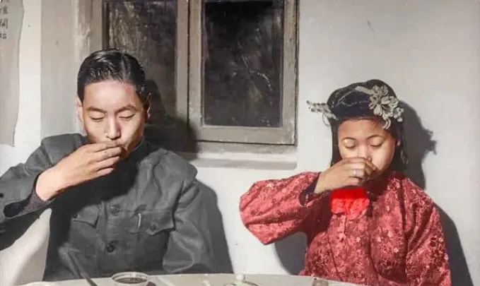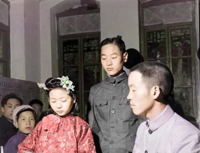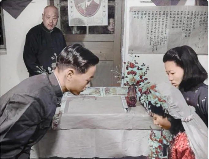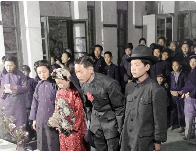 说真的\u2009,\u2002这组老照片一翻出来我就坐不住了\u2009,\u2002不是摆拍的精致棚景\u2009,\u2002而是院子里真刀真枪的一场婚礼\u2009,\u2002烟火气足得很\u2009,\u2002新人有点紧张\u2009,\u2002伴郎伴娘忙前忙后\u2009,\u2002旁边小伙拿着鞭炮一挂接一挂地放\u2009,\u2002那动静我隔着屏幕都能听见\u2009,\u2002今天就照着照片\u2009,\u2002把这场民国婚礼里的老物件和老规矩唠一唠。