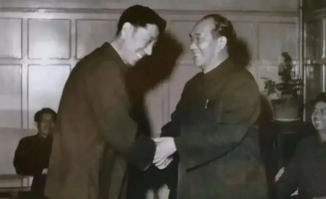 这个瞬间叫“放下心”的笑,一位瘦高的先生前倾着身子,另一位满面堆笑,手心紧紧扣住,屋里的木板墙像学校的讲台背景,角落里围着看热闹的人,爸爸看完说,“人情冷暖都握在一只手里”,以前走亲戚路远,握手是真见面,现在手机一响,热闹就在屏幕那头。