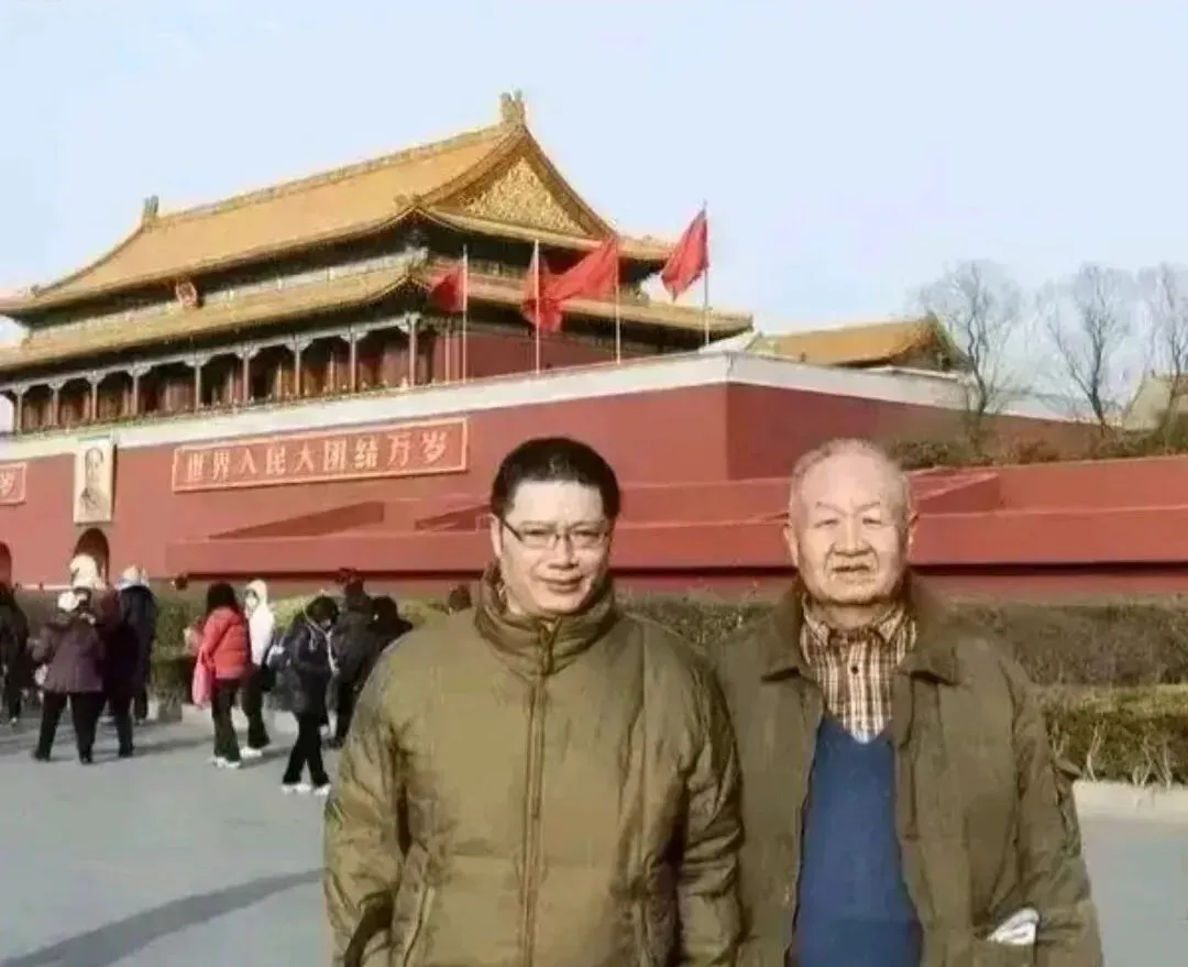 这张是标准的到此一游照,红墙金瓦铺陈在身后,两人都穿着棉服,领口鼓鼓的,老人的手里攥着旧报纸,年轻人把脸对着风,眼角被吹得眯起来,这种日常像白开水,没滋没味却离不开,很多年后你会发现,真正耐看的,都是这种不讲排场的笑。