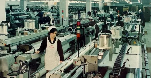 这张是车间的阵仗,铝亮的机台排得笔直,指示灯红绿一跳一跳,值班的大姐腰间围着白围裙,手指点过去纱锭就乖了,嗡嗡的响声一进门就盖住话头,师傅说当年一班就是八小时,走廊尽头的水房有铝壶和大瓷缸,口渴了接一瓢冰凉得很。