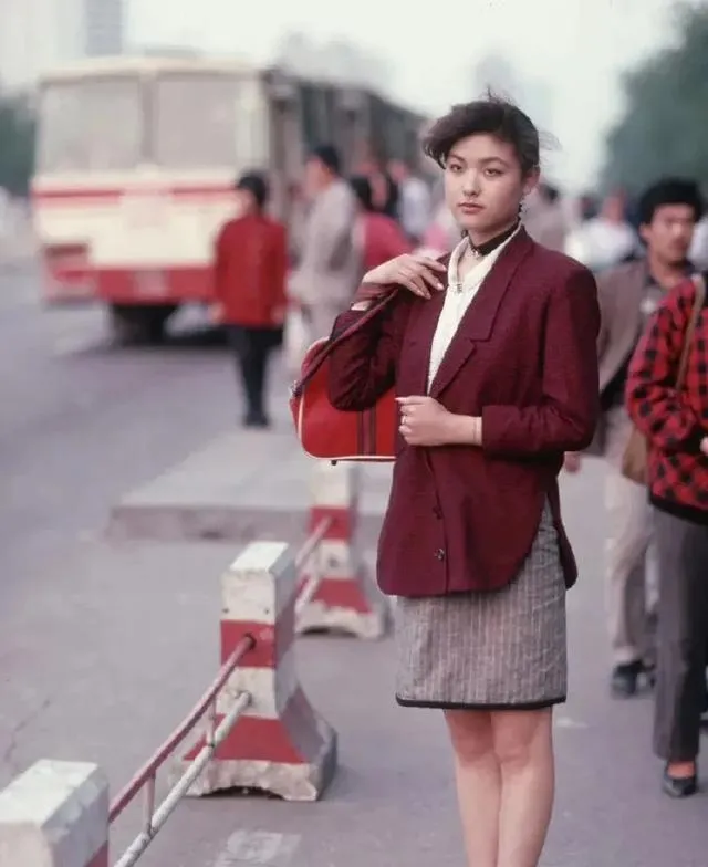 这位站在公交站,手肘一勾红色挎包,西装外套配铅笔裙,队伍缓慢往前挪,她不时看一眼远处的车牌,路边隔离墩红白相间,像给这条日常的路画了条边,朋友打趣说你这身像要去面试,她笑着说只是去逛商场。