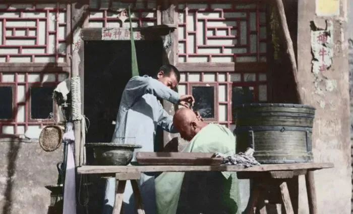 台面一搁,布一围,剃头匠的江湖就开张了,铜盆里是温水,刀片在皮带上来回蹭得发亮,手背一撑就把客人的皮绷平了,咔嚓两声,光溜溜的脑袋就见了镜,师傅嘴里还问一句要不要清耳,再掏掏眼角的泥,这一套下来人都清爽了,爷爷说那会儿留不留辫子可不是玩笑,现在理发店的热毛巾一盖,也还找得到点当年的讲究。