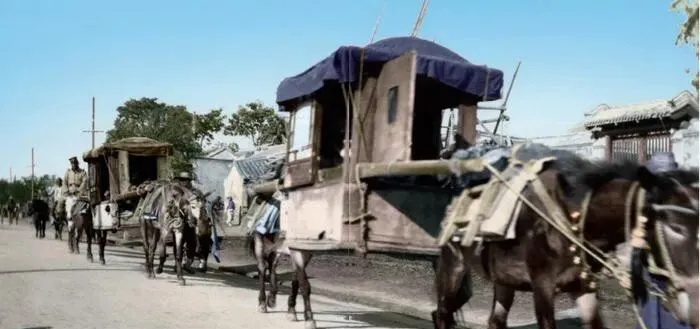 前后杠子拴在两头骡子身上,棚子用蓝布罩着,窗檐垂条小幔,颠簸起来并不狠,得益于骡子脚稳,走山路最合适,师傅手里攥着缰,一声吆喝队伍就匀速挪,爸说去关外跑差事,首选就是它,省草料还耐走,现在高速一上,几个小时到地头,谁还琢磨骡轿呢。