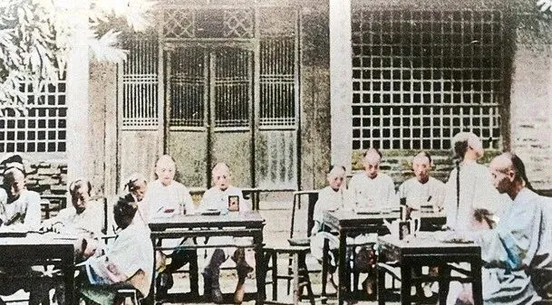 图中这几张条桌就是私塾的座,先生坐上首,桌上一摞经书,学生多是大褂长衫,手里捏着毛笔,有人低着头描红,有人偷偷望窗外的树影,我小时候也被逼着写过柳体,墨水不小心滴在纸上,顺着纹路化开一朵黑花,先生用戒尺点点桌面,咳了一声,屋子立刻安静下去,以前学问从一笔一画里熬出来,现在打字快得飞,字写得美不美,反倒不那么紧要了。