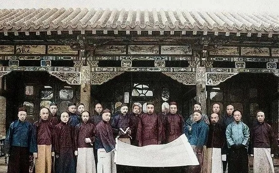这张门口合影叫全衙署的脸面,大家站在雕梁画栋下,抱着一卷长长的图纸,可能是邮路或铁路的线形图,衣摆收得整齐,腰带束得紧,神情都不松懈,叔说,一条线画顺了,千里路就有谱了。