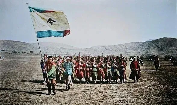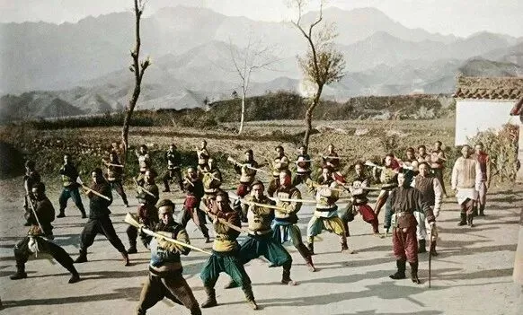 第一张是大刀操,队列在院坝里排开,刀背在阳光下发灰白的光,口号合着山谷的回声,有个穿长衫的老人拄着拐在边上看,时不时点点头,第二张是旗手带队行军,旗面上“令”字被风掀起半边,衣裤是鲜亮的对拼色,脚步一齐迈出,尘土跟在脚后打着旋儿,现在演练讲模块化和数码模拟,那会儿就靠一次次喊出来练出来,嗓子沙了也不罢休。