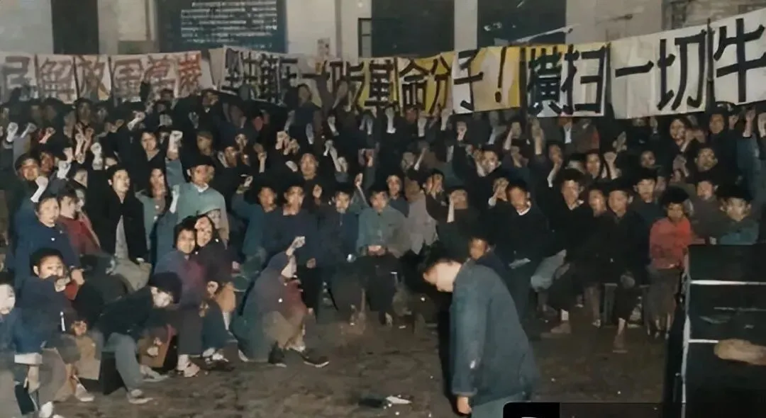 这个场面里的扩音喇叭叫口号筒,铁皮做的,嘴大肚浅,声音一灌进去,像从井里炸出来似的,那个年代的风刮得猛,字幅铺天盖地,先生沉着着身影,挤在人群的缝里,历史的回声从喇叭里涌出来,震得人心口发紧。