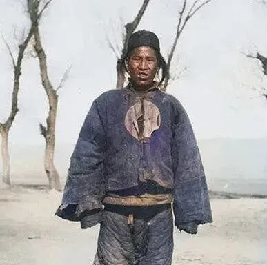 这身蓝棉袄叫官差冬装,正前襟一个圆补,边口起毛,腰里一根麻绳打结,帽檐塌下去挡风,脸被北风吹成了红黑色,站在枯树下,影子短短的,整个人瘦得像根杆。