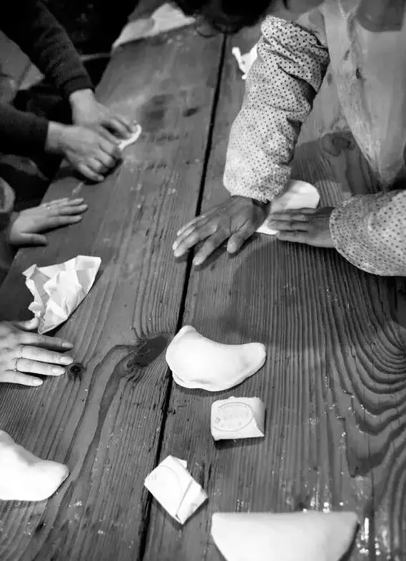 1981年鸣鹤场年糕饺制作(桑金伟摄)