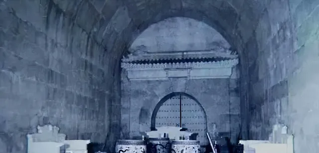图里的拱形顶子全是条石砌的,墙面被水汽熏出一道道白痕,地上摆着石案和大香炉,灯一打上去,冷气嗖地往镜头里钻,爷爷当兵时住过石拱涵洞,他说这种顶“抗得住”,可一旦破开通风走湿,里头的东西就经不起折腾了。