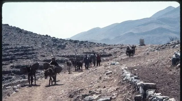 这排灰不溜秋的是毛驴驮队,驮筐是柳条编的,里头装的是粪土或者石块,石坎路窄得很,驴蹄子踩在石缝里叮叮当当,风一吹全是尘,以前修梯田靠它们,一筐一筐堆出良田,现在卡车一来咔嚓就卸了,以前慢,现在快。