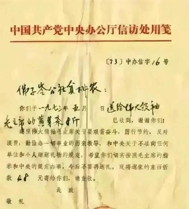 这张纸叫回执单,黄纸打底,油墨印章压在右下角,手写字歪歪扭扭却有劲,金额数字一眼能看清楚,爷爷指着说当年讲究来而有往,收了就要回个话,不拖不欠,规矩在纸上摆着。