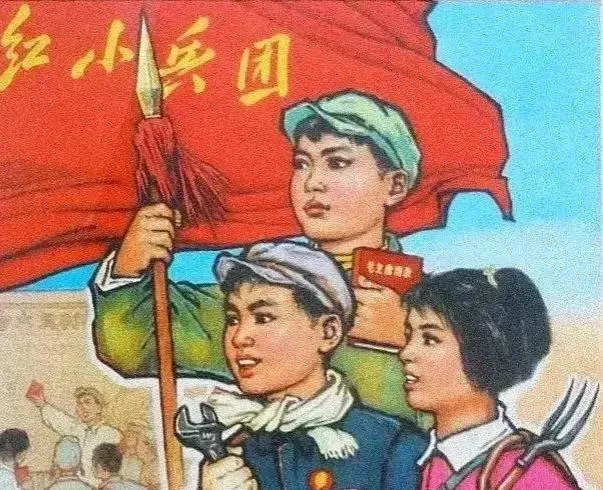这幅宣传画一看就熟,红旗高高举着,小本本露出一个角,颜色涂得亮,边框有点起毛,贴在堂屋墙上能撑住一整面,表弟站在下面学着握旗的姿势,弄得满手粉末,还是不肯下来。
