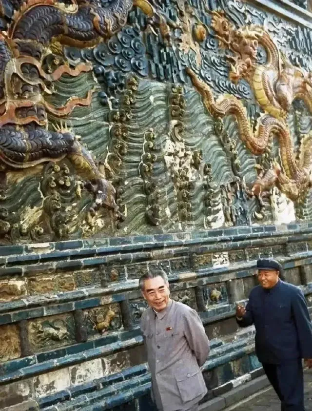 这张叫九龙壁前留影,青釉龙身子盘着,爪子探到墙外的感觉,砖缝里颜色深深浅浅,走近了会闻到一股旧土味,爷爷说四爪五爪有讲究,你只管抬头看,就知道什么叫气派。