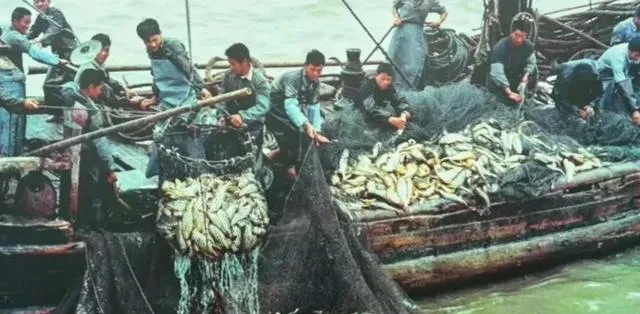 最后这张叫东海大黄鱼丰收,网一抬就是沉甸甸一兜,甲板上全是人影,袖口卷得高高的,谁都顾不上擦汗,妈妈笑说那会儿鱼不值钱,猪肉才稀罕,现在倒过来了,时代就爱跟人开玩笑。