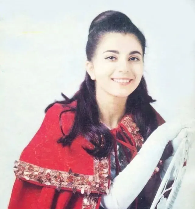 图中这位姑娘的披肩斗篷边上亮片一圈一圈的,发髻高高盘起,眉眼开朗,笑得特真诚,奶奶看了照片说,这样的发型当年在德黑兰理发店可火了,烫一次要排队,回到家里还得用发网罩住,不然一觉压没了就白花钱了。