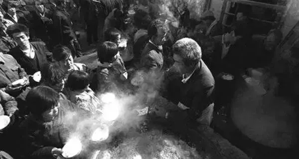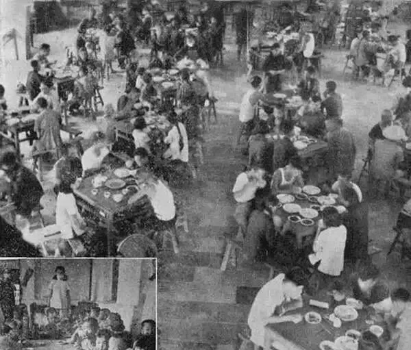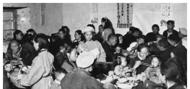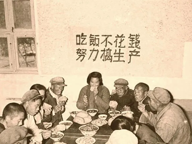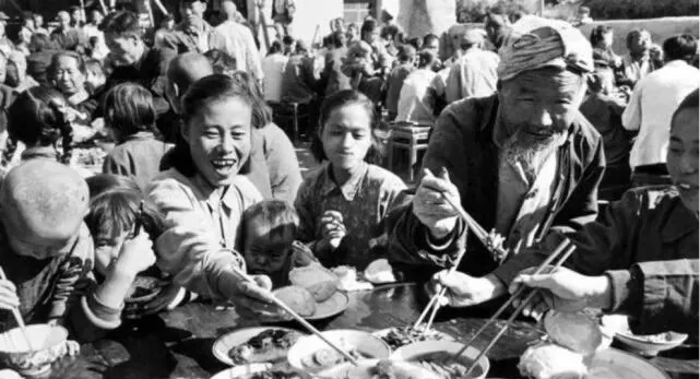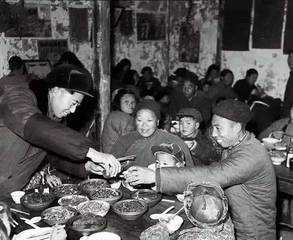 人民公社大食堂老照片:放开肚皮吃,吃饭不花钱。
