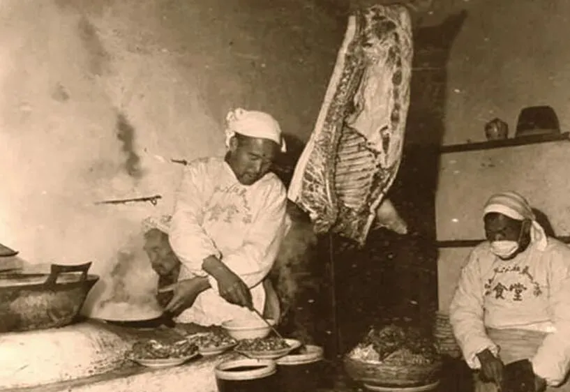这个场面就叫赶饭点,人挤人却不觉得乱,桌上冒着热气,穿白围裙的服务员提着搪瓷壶穿梭着,孩子抱着窝窝头咬一口再看大人碗里有什么菜。
