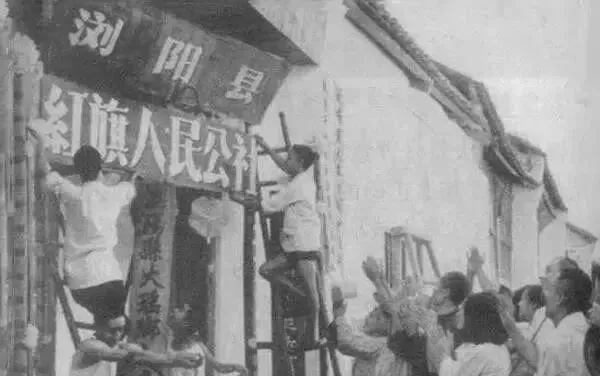 这块木牌匾上写着红旗人民公社,两边架起梯子,年轻人往上钉,底下掌声啪啪响,爷爷说那天太阳大,心里更亮,觉着日子一下子有了奔头。