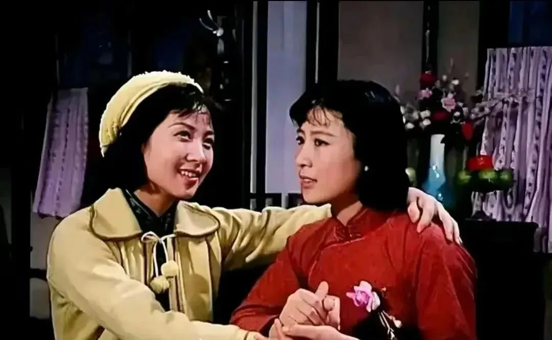 这张屋里光,色调暖,她坐在里侧,眼神有点忧心,旁边的姑娘抱住她肩头安慰两句,台词并不复杂,走的全是细枝末节,她的手轻轻回握一下,戏就落地了,这种小动作,都是舞台下百次千次练出来的,如今再看,味道还在。