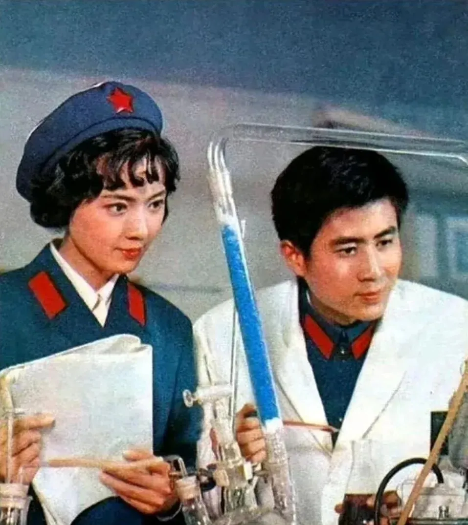 最后这张放在实验室里,白大褂配军帽边章,玻璃管一层层往上搭,她拿着资料盯着读数,身边人低声说了句数值,她只抬了抬眼,戏就完成了,那时候的职业戏注重手上细节,拧阀门要像真的,拿本子要有旧痕,这种生活里的真实,才把人物撑到银幕外。
