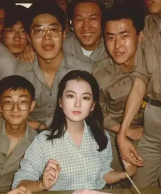 图中这位穿格子衬衫的姑娘坐在中间,后头一圈兵哥哥把笑挂到耳根,谁的肩章还露着点油渍,桌上小蛋糕粉粉嫩,摄影师一按快门,青春就被定住了,文艺队下连慰问的戏码常见,歌一开口操场那面风都软一点,小时候我站在栏杆外边听,脚跟儿不自觉地打拍子。