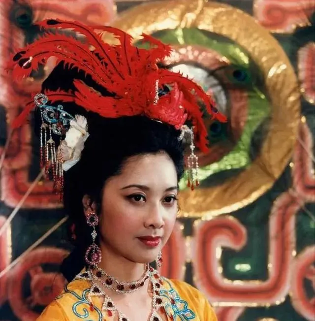 这张是戏服照,头上大红羽翎挑得高,耳坠子一对坠到颈侧,锦缎衣襟压金线,妆容收得住,眼尾一挑就有味儿,那会儿电视里一播古装戏,全家围一圈,妈妈说她的头饰真沉,脖子可得硬,后来换成高清了,细节更清楚,可那种新鲜劲反倒不如当年。