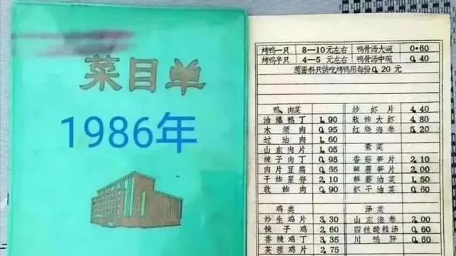 这个小本本叫菜单,绿色封皮一抹旧油亮,中间印着“1986年”的字样,翻开一页价目清清楚楚,烤鸭八块往上,名酒也就那价,舀一碗汤四毛八,服务员用铅笔在纸上勾勾画画,结账时算盘一拨就出数,现在扫码噼里啪啦一过,速度是快了,抬头寒暄却少了几句。