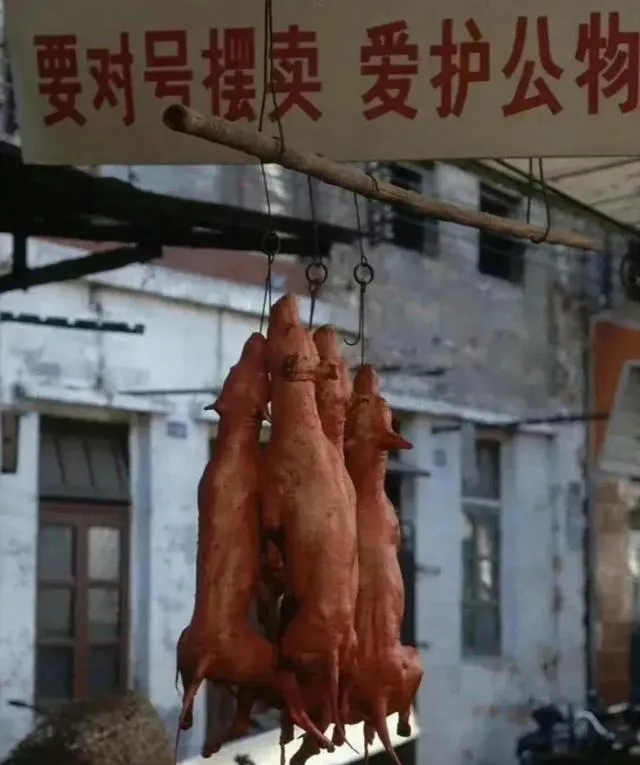 这排叫烧乳猪,红酱色的皮亮到反光,钩子穿过脊背,油水顺着下巴边儿滴,摊棚上头悬着“爱护公物”的横幅,师傅抡刀子一剁一抹,香味往巷子里窜,小孩踮脚看,大人装盘快,奶奶说过年才舍得买一小块,现在冷柜里什么时令都有,节气的盼头倒是少了。