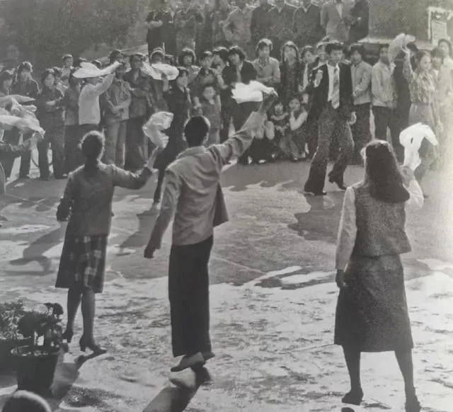 这位是舞台上的主持,头上系一条网纹小方巾,灯下皮肤白得发亮,话筒边缘映出一圈银光,她侧着脸等口令,嘴角带一点笑,台下的掌声一波压一波,父亲说那年电视台刚开,节目不多,能把人看得坐直了腰,现在频道多了,能让人安安静静看完一档的并不多。