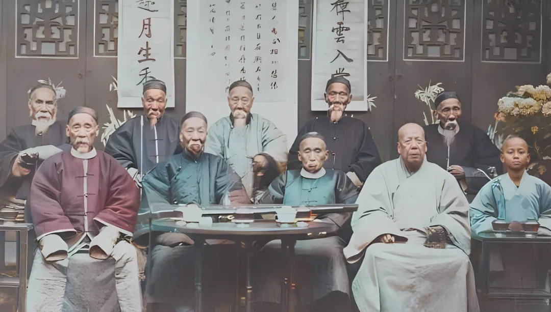这个屋里摆着方桌和水盂,后墙挂着条幅,几个老先生坐得端端正正,手里不是扇子就是卷轴,胡子花白,眼神却亮,桌上铺着墨盒和印泥,朋友笑说这是早年的读书会,我点头,茶一盏,字两行,彼此拱手一笑,谈笑有鸿儒四个字落在这张里不算夸。