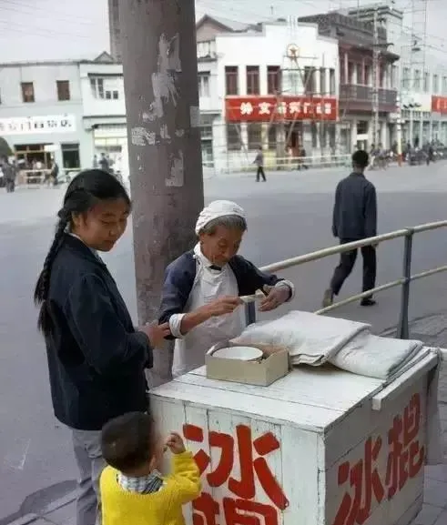 这个木箱子上写着“冰棍”两个大字的就是冷饮摊,白头巾的奶奶手快,盖子一掀就抄出一根,三分一根五分一根味道不一样,孩子手小拿不稳,冰水顺着手腕往下滴,夏天就靠这口甜撑过去,妈妈说别啃太急,牙要疼的。