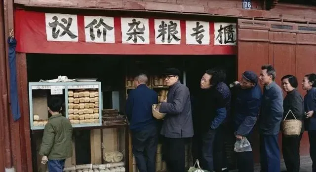 这条队前的牌子写着议价杂粮专柜,玻璃柜里馒头摆成方块,手里抓着布票粮票,轮到就递进去,掌柜的手背青筋一根根,算盘噼里啪啦,那时候凭票买东西,现在手机一扫就走人,可排队聊天的热闹是手机给不了的。