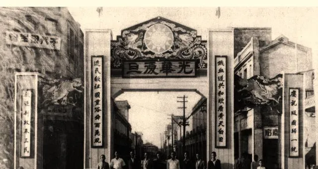 图中这条街叫牌楼口,木牌坊四柱立着,匾心压着一线天光,街心辙印深,车辕和轿杠在其间来回,摊棚布篷一排排撑开,远处屋顶像鱼鳞一样压到天边,爷爷说这类口子最热闹,早上卖早点的吆喝一压一压传过去,下午就换成织补修伞的人,夜里风一来,牌楼檐角叮的一声,像给这城系上了铃铛。