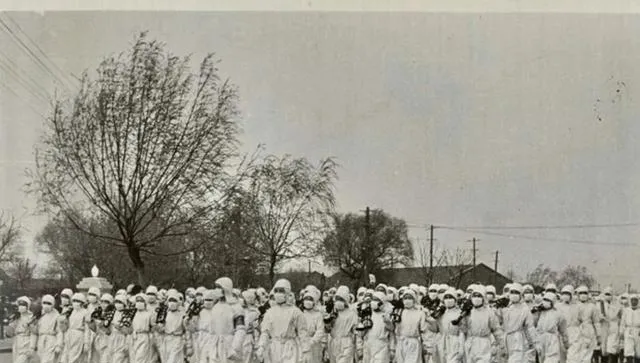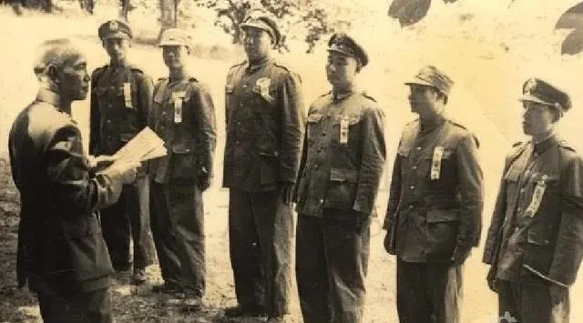 这个画面里站成一排的人在听训,胸前别着带子的纸牌,地上光影分成一格一格,讲的人手里拿着本子,嘴唇抿在一起,队列里有人偷瞄了一眼,像等点名又怕被点到,场面不大,却把那阵紧绷绷的气氛留下来了。