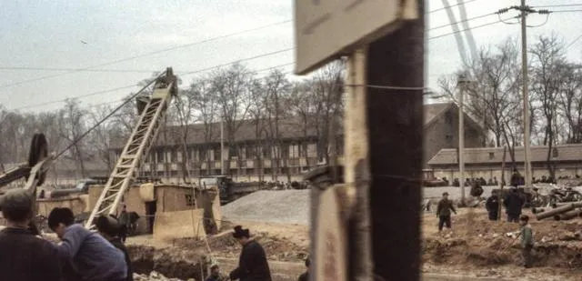这个大铁家伙是旧式抓斗起重机,履带带着壕沟里爬,钢索一收一放,碎石子成堆,站在旁边的人袖口里露出一截烟灰,眯眼看它把坑一点点填平,以前修路靠石碓和肩挑,现在机器一来,土方翻得快,可也吵得人一夜睡不沉。