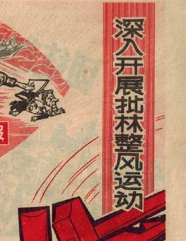 这张海报边上写着字样,红线压边,角上是飞溅的笔画,老纸张的毛边一看就旧,屋里贴过类似的,夏天风一吹咝啦响,爸爸说那会儿口号就是空气,走到哪儿都在耳边。